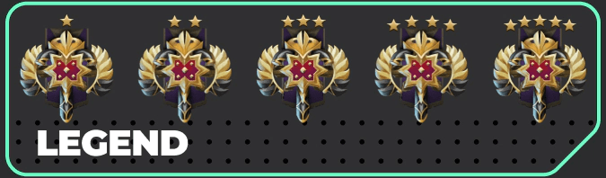 Как читать таблицу. Если у тебя, скажем, Легенда 3, ты примерно в топ-22–23%. Дальше ступени становятся «дороже»: каждый шаг требует либо серьёзного апгрейда дисциплины (вижен, тайминги, позиционка), либо стабильного пула героев под мету.